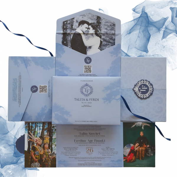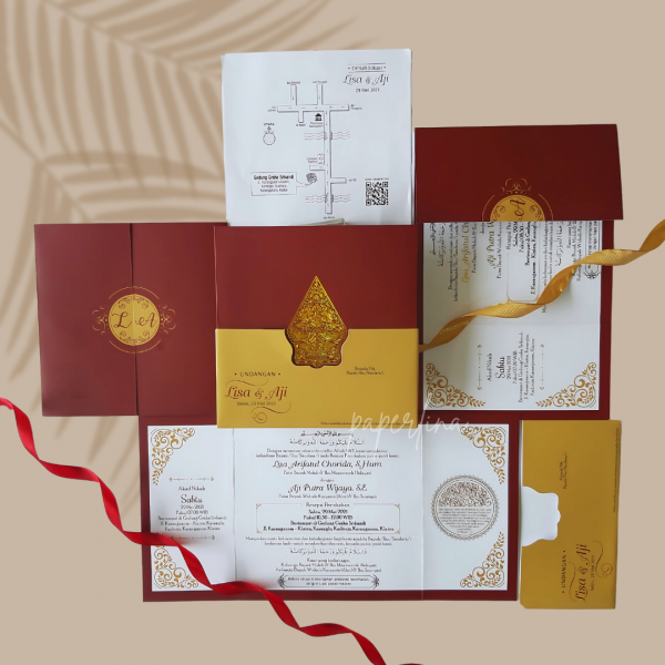 - Banyak Bonus. Kami memberikan bonus berupa tag gantungan souvenir (thankscard), label nama dan buku tamu dengan desain serupa dengan undangan sehingga memberikan kesan keserasian. (jumlah bonus menyesuaikan jumlah undangan)